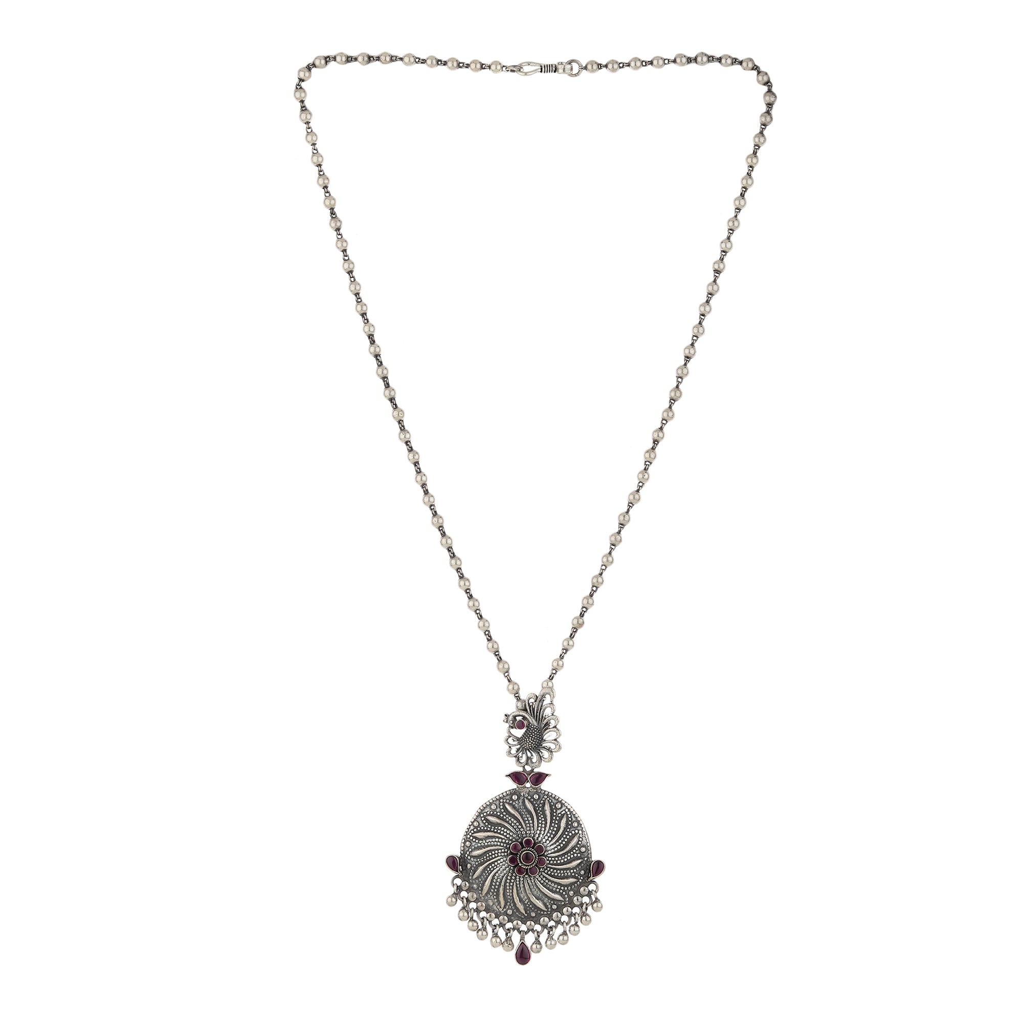 This oxidized sterling necklace features a stunning big circle oxidise Necklace that serves as its centerpiece. The rich, dark finish of the metal creates a striking contrast against any skin tone, making it an eye-catching accessory for any outfit. The oxidise Necklace hangs from a delicate yet sturdy chain, allowing it to rest elegantly on the wearer's collarbone. This oxidise Necklacd is a perfect addition to any jewelry collection, adding a touch of understated elegance and sophistication to any ensemble.