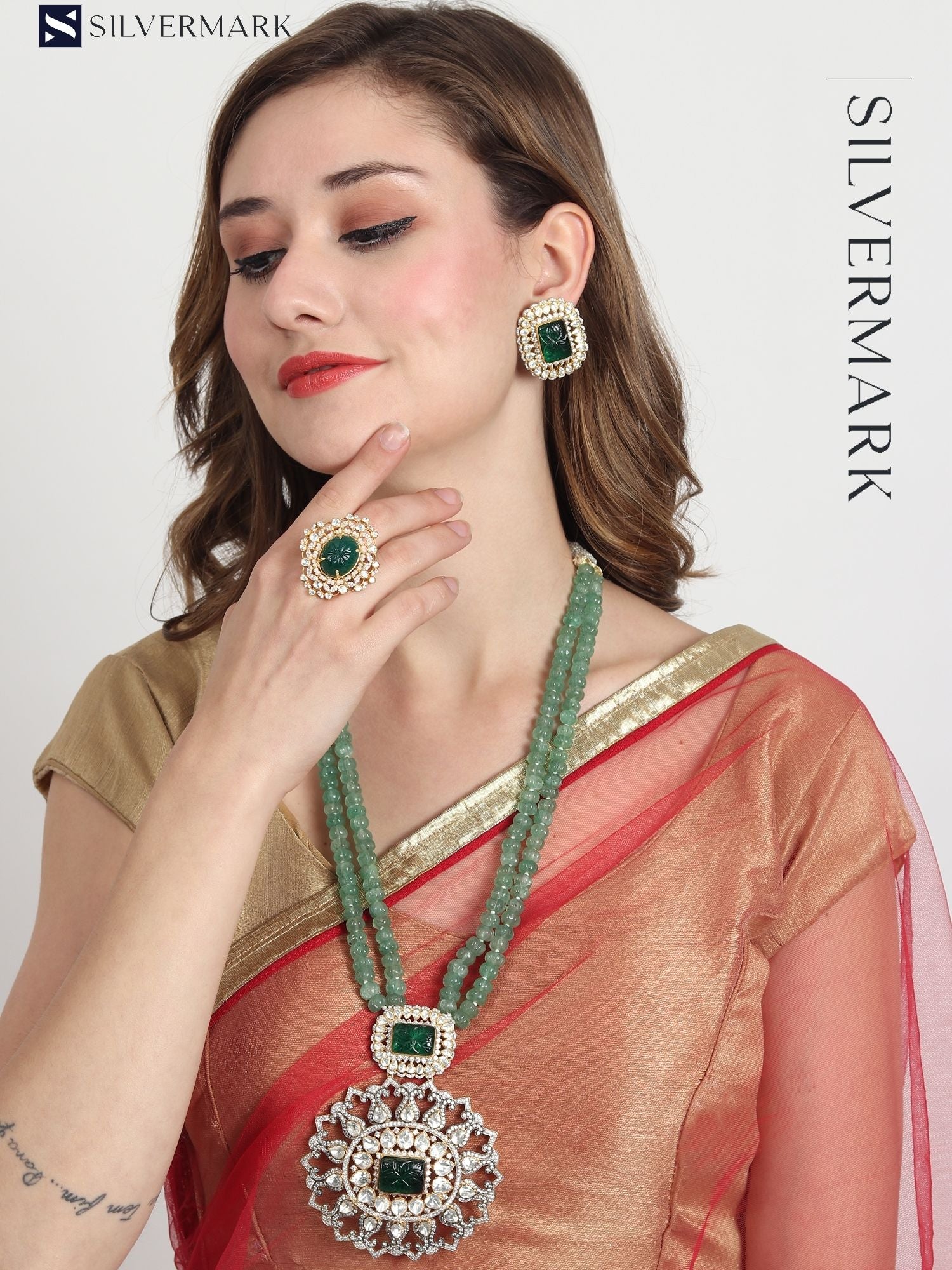 Experience luxury with the Silvermark Polki Moissanite Necklace. This exquisite piece features a Sterling Silver chain and a dazzling Polki Moissanite pendant. Known for its exceptional brilliance and durability, Polki Moissanite adds a touch of elegance to any look. The adjustable necklace comes with a secure clasp and is crafted with utmost attention to detail. Packaged in a beautiful gift box, it's the perfect present or self-indulgence.✨